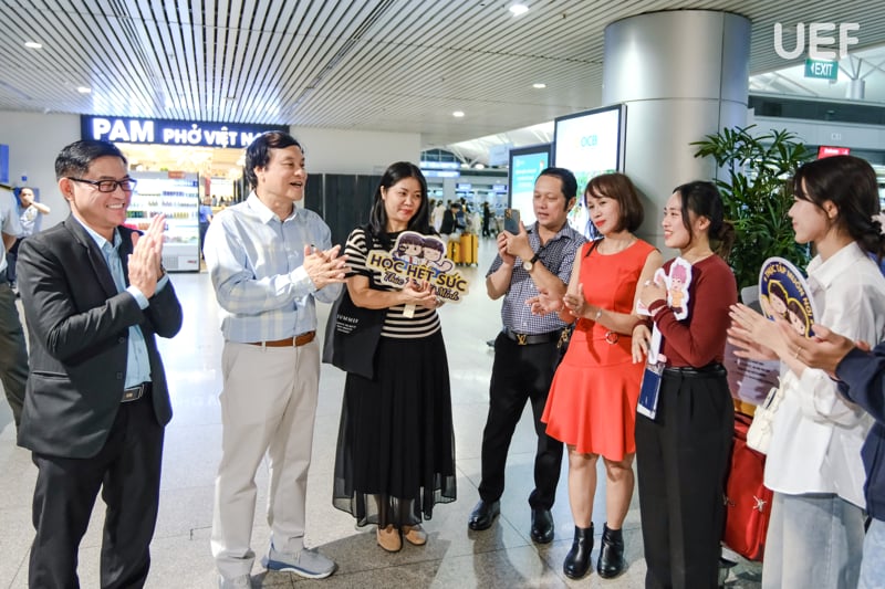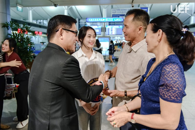 Trước khi chuyến bay cất cánh, các thầy cô đã dành thời gian dặn dò tận tình từng sinh viên, từ việc kiểm tra kỹ lưỡng vé máy bay, giấy tờ quan trọng, cho đến việc chuẩn bị tâm lý vững vàng để thích nghi với môi trường mới. Thầy cô cũng không quên nhắc nhở các bạn về sự đoàn kết, tinh thần hỗ trợ lẫn nhau trong suốt quá trình thực tập và phát triển. Những lời chúc tốt đẹp, sự quan tâm cũng như niềm hy vọng từ thầy cô và gia đình đã trở thành nguồn động lực lớn, tiếp thêm sức mạnh và niềm tin cho hành trình sắp tới của sinh viên UEF.