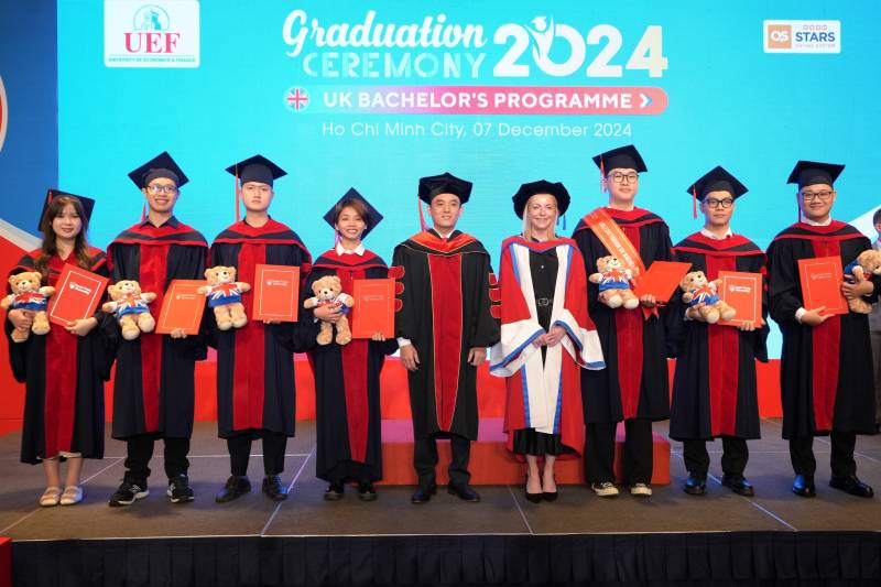 Trong đợt tốt nghiệp này, UEF đã vinh danh và trao bằng cho 63 sinh viên tốt nghiệp các ngành nghề đào tạo gồm: Quản trị kinh doanh và Marketing, Tiếng Anh và Ngôn ngữ học, Quản trị du lịch và khách sạn quốc tế, Kinh doanh quốc tế. Trong đó, 58% tân cử nhân chương trình quốc tế xếp loại xuất sắc và giỏi. Đáng chú ý, hơn 95% sinh viên đã có việc làm sau khi hoàn thành chương trình học, nhiều sinh viên đã tiếp tục lựa chọn du học và học lên các bậc học cao hơn.