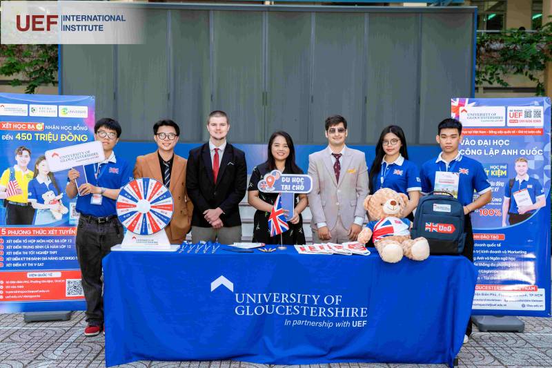 Bên cạnh phần chia sẻ, học sinh được giới thiệu thông tin về chương trình liên kết với University of Gloucestershire, các ngành xét tuyển, chính sách học bổng và quy trình đăng ký.