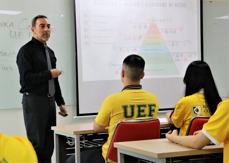 Sinh viên chương trình Cử nhân Hoa Kỳ - Đại học Keuka đào tạo tại UEF được thụ hưởng môi trường học tập hoà nhập hoàn toàn trong không gian quốc tế. Các bạn được dẫn dắt trực tiếp bởi đội ngũ giảng viên bản ngữ đến từ Hoa Kỳ và các quốc gia nói tiếng Anh, đảm bảo sự vượt trội về tư duy ngôn ngữ lẫn chuyên môn. Không dừng lại ở giảng đường, tính kết nối toàn cầu còn được thể hiện qua các lớp học đồng giảng (co-teaching), nơi sinh viên UEF cùng học tập, thảo luận cùng sinh viên quốc tế.