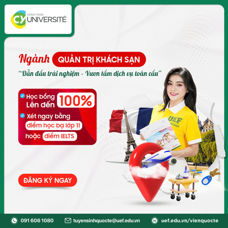 Đảm bảo chuẩn mực đào tạo khắt khe của nền giáo dục Pháp ngay tại Việt Nam, hai chương trình Cử nhân Quản trị Khách sạn và Cử nhân Quản trị Nhà hàng & Nghệ thuật Ẩm thực CYU – UEF chính là bệ phóng vững chắc giúp sinh viên chinh phục thị trường lao động quốc tế với kiến thức chuyên sâu, kỹ năng quản trị chuyên nghiệp và tư duy toàn cầu.