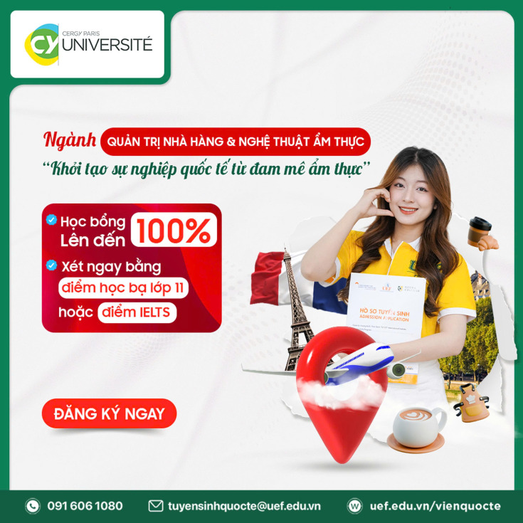 Trong thời đại toàn cầu hóa mạnh mẽ, theo học một chương trình quốc tế ngay tại Việt Nam không chỉ là lựa chọn tiết kiệm mà còn là bước đi chiến lược để mở rộng cánh cửa ra thế giới. Với khối ngành khách sạn – nhà hàng, chương trình Cử nhân CY Cergy Paris (Pháp) hợp tác cùng UEF mang đến môi trường học chuẩn quốc tế và trải nghiệm thực tế ngay tại TP.HCM.