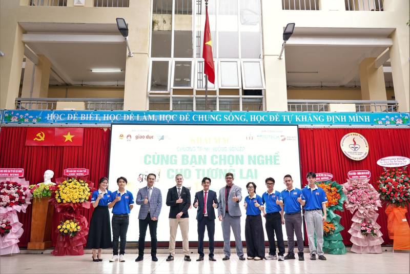 Sáng nay, lễ khai mạc chương trình “Cùng bạn chọn nghề cho tương lai” lần thứ 17 đã diễn ra tại trường THPT Võ Thị Sáu, quận Bình Thạnh, TP.HCM. Đây là chương trình thường niên do Sở Giáo dục và Đào tạo (GD&ĐT) TP.HCM, Đại học Quốc gia TP.HCM (ĐHQG-HCM), Tạp chí Giáo dục TP.HCM, Trung tâm Phát triển Giáo dục và Đào tạo phía Nam (Bộ GD&ĐT) phối hợp tổ chức.