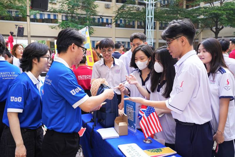 Tại chương trình, các bạn học sinh Trường THPT Võ Thị Sáu đã được các chuyên gia, diễn giả chia sẻ về cách xác định ngành học phù hợp với sở thích, năng lực và sở trường của bản thân. Theo ghi nhận tại chương trình, các bạn học sinh đã dành sự quan tâm đến các nhóm Kinh tế, Marketing cũng như những cơ hội học tập tại môi trường quốc tế. ThS. Nguyễn Bá Anh – Phó Viện trưởng Viện Quốc tế , Phó Giám đốc Gloucestershire Vietnam đã có phần tư vấn và giải đáp thắc mắc cho các bạn học sinh, góp phần giúp các bạn có thêm nhiều thông tin về bổ ích về lựa chọn ngành học và cơ hội việc làm trong tương lai.