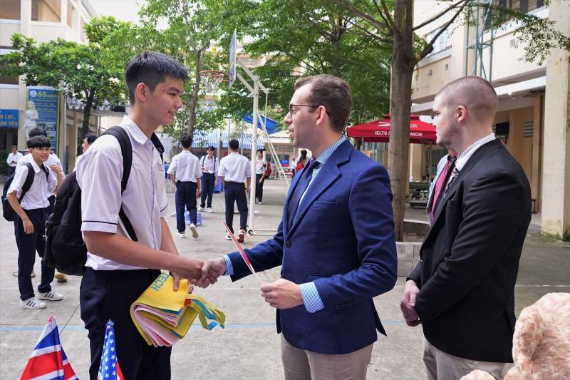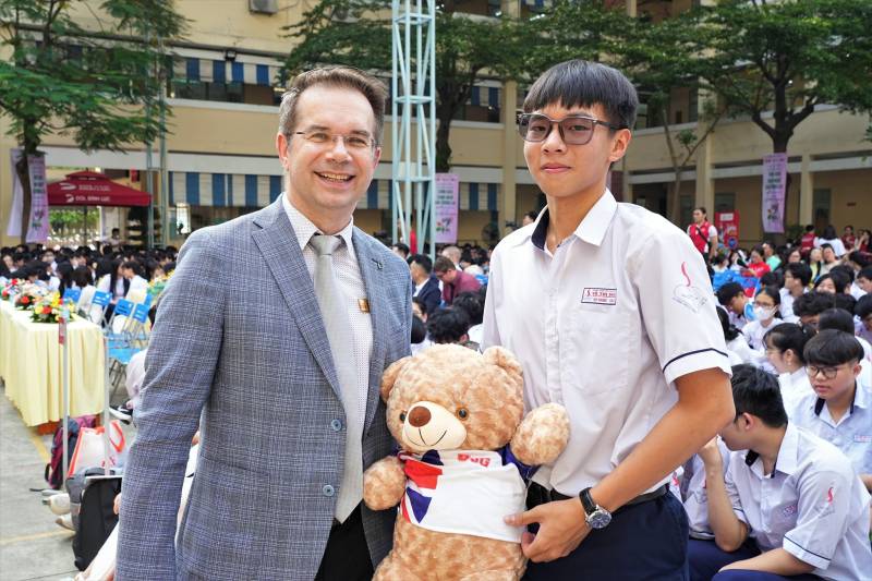 Các bạn học sinh hào hứng với quà tặng từ Gloucestershire Vietnam