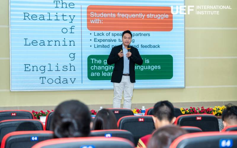 Workshop “Biến AI thành gia sư tiếng Anh miễn phí” do ThS. Khưu Hoàng Nhật Minh – chuyên gia IELTS chia sẻ, mang đến những gợi ý thực tế về cách tận dụng các công cụ AI để hỗ trợ việc học tiếng Anh, từ luyện viết, cải thiện phát âm đến xây dựng lộ trình tự học hiệu quả.