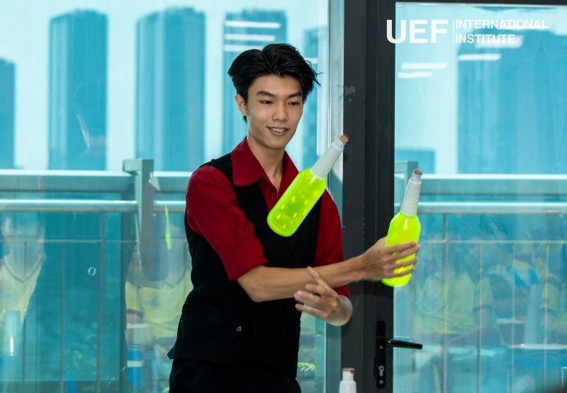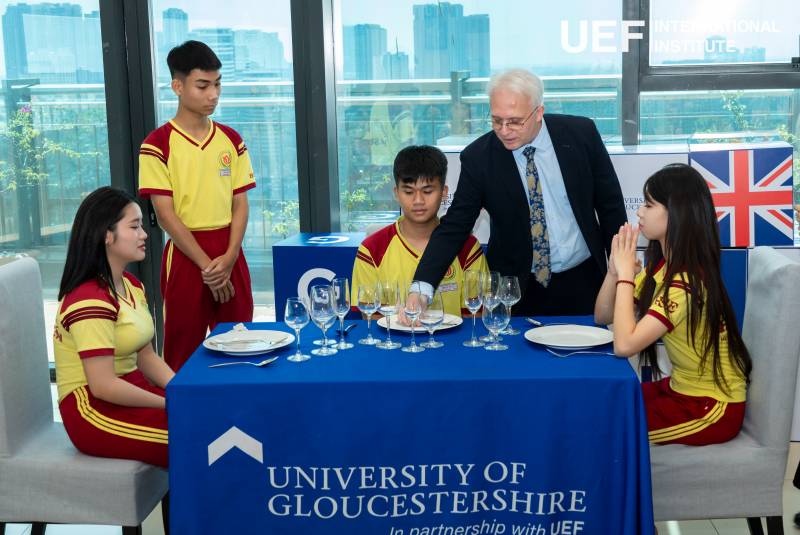 Bên cạnh đó, workshop “Nghệ thuật bàn tiệc và chuẩn mực ứng xử trên bàn ăn” do GS. Eric Jose Olmedo Panal – Viện trưởng Viện Quốc tế UEF hướng dẫn đã mang đến góc nhìn thú vị về văn hóa giao tiếp trong môi trường quốc tế. Tại đây, học sinh được tìm hiểu các quy tắc ứng xử và thực hành setup bàn tiệc theo chuẩn quốc tế.