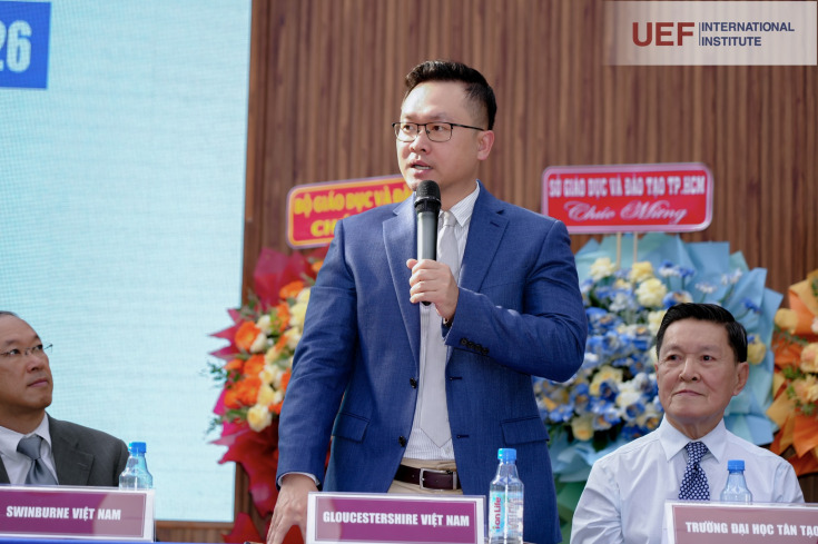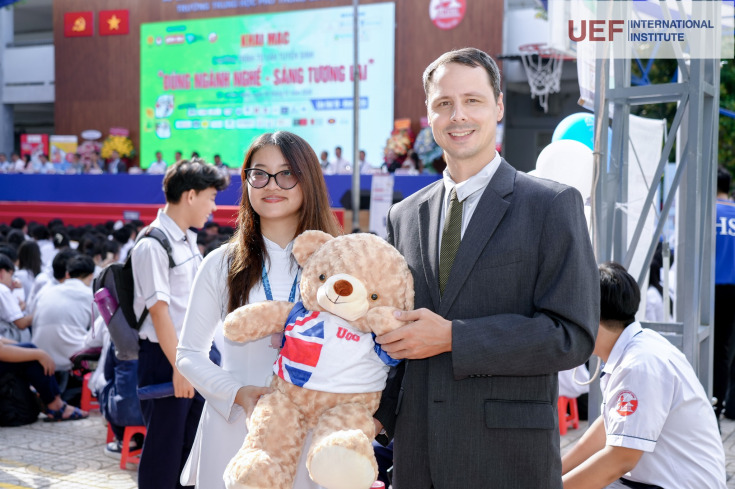 Tại sự kiện, TS. Đỗ Hữu Nguyên Lộc, Phó Hiệu trưởng UEF đã trực tiếp tham gia tư vấn với vai trò chuyên gia, chia sẻ về xu hướng lựa chọn ngành nghề gắn với hội nhập quốc tế, cũng như những lợi thế của chương trình cử nhân quốc tế ngay tại Việt Nam.