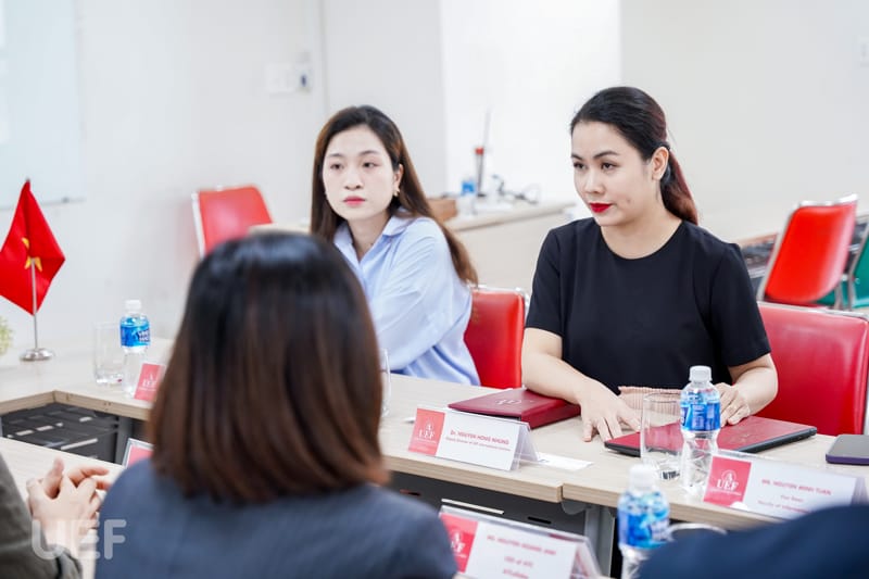 Về phía UEF có TS. Nguyễn Hồng Nhung - Phó Viện trưởng Viện Quốc tế, ThS. Nguyễn Minh Tuấn - Phó Trưởng khoa Công nghệ thông tin, ThS. Trần Thành Công - Trưởng ngành Thương mại điện tử.