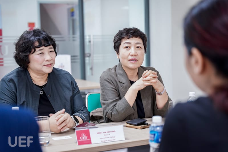 Chương trình hợp tác quốc tế tại UEF tiếp tục được kết nối, triển khai thông qua các buổi trao đổi và làm việc cùng các trường đại học, tổ chức, doanh nghiệp. Với mong muốn mở rộng hoạt động quốc tế trong lĩnh vực công nghệ, điện tử, sáng 26/10, UEF đã có buổi làm việc với Trường Đại học Dongseo (Hàn Quốc) và Công ty TNHH Atcollabo.