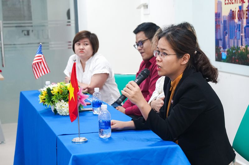 Sinh viên tham dự chương trình cũng được dịp trao đổi với diễn giả những vấn đề mình đang băn khoăn như: có nên ở ký túc xá hay không, ở ký túc xá có thuận lợi, bất tiện gì, có nên đi làm thêm, những trở ngại về ngôn ngữ, văn hóa, lợi ích của việc du học,… Bằng trải nghiệm sống thực tế khi đi du học của mình, diễn giả đã đưa ra nhiều lời khuyên bổ ích cho các bạn sinh viên UEF.