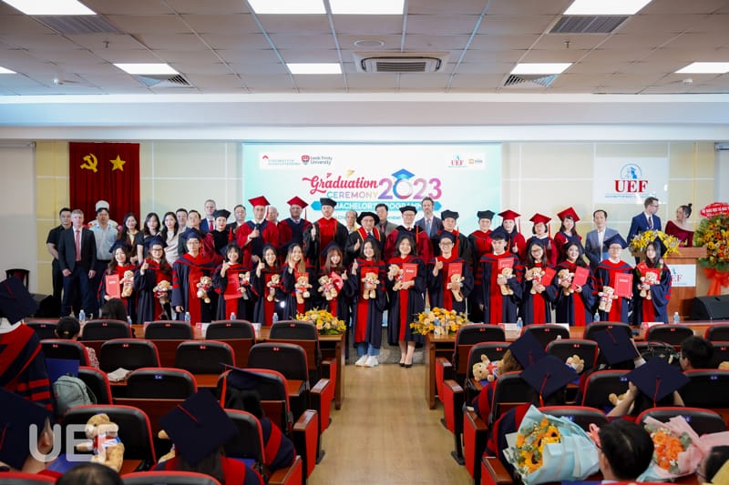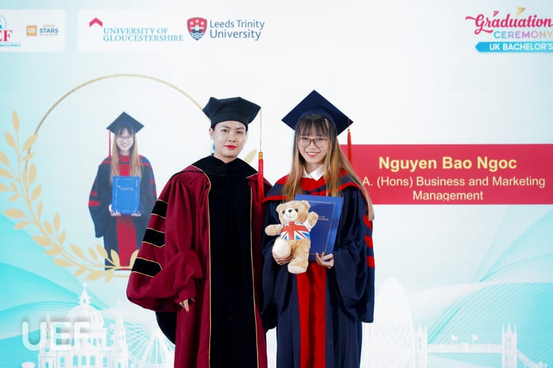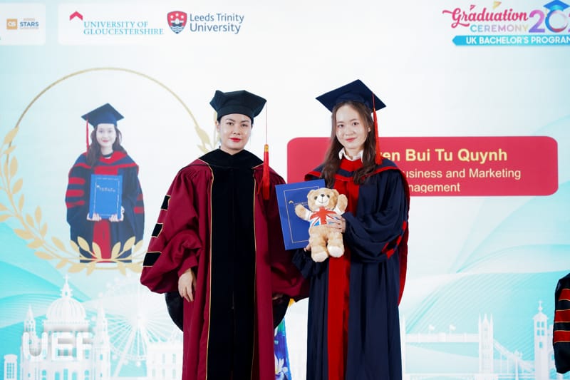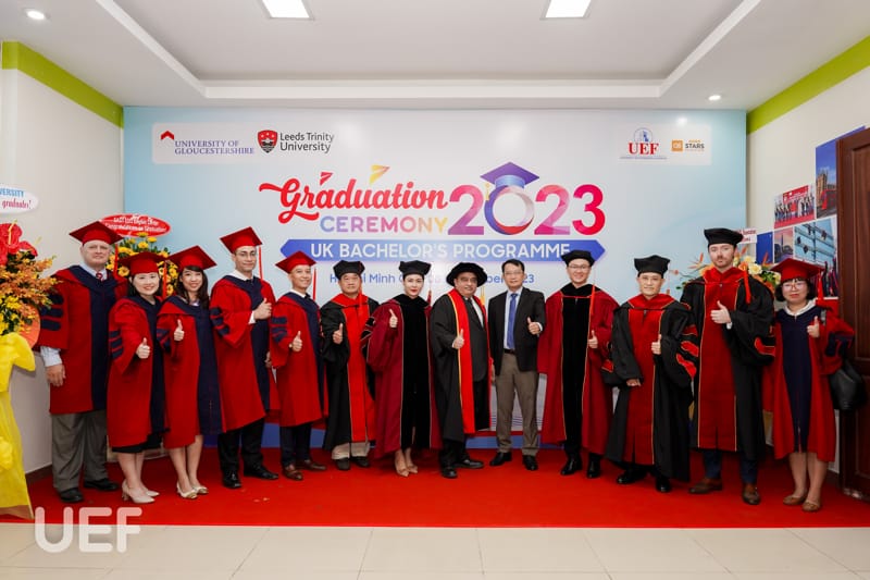 Sáng 8/12, Viện Quốc tế UEF đã long trọng tổ chức Lễ Bế giảng và trao bằng tốt nghiệp cho sinh viên chương trình liên kết đào tạo cùng Đại học Gloucestershire và Đại học Leeds Trinity, Anh Quốc. Với những giá trị tri thức và bài học kỹ năng được tích lũy, các bạn sẽ bước tiếp hành trình mới cùng tấm bằng Cử nhân có giá trị quốc tế.