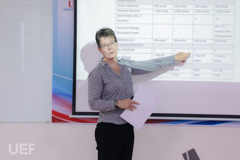 GS. Jenny Hill đứng lớp xuyên suốt 4 buổi để chia sẻ cùng các thầy, cô UEF