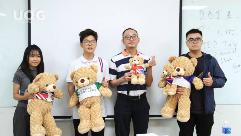 Các học sinh chụp hình sau buổi học cùng các thầy, cô tại UoG Vietnam