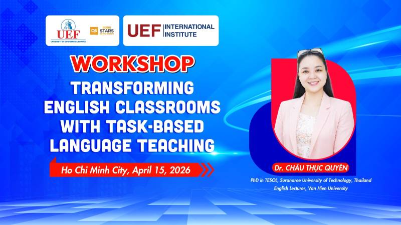 Sinh viên đang theo học học phần TESOL1 tại Viện Quốc tế UEF sẽ có cơ hội tham gia workshop “Transforming English Classrooms with Task-Based Language Teaching” nhằm củng cố kiến thức chuyên môn, mở rộng góc nhìn về phương pháp giảng dạy tiếng Anh hiện đại và tiếp cận các xu hướng ứng dụng công nghệ trong giáo dục.