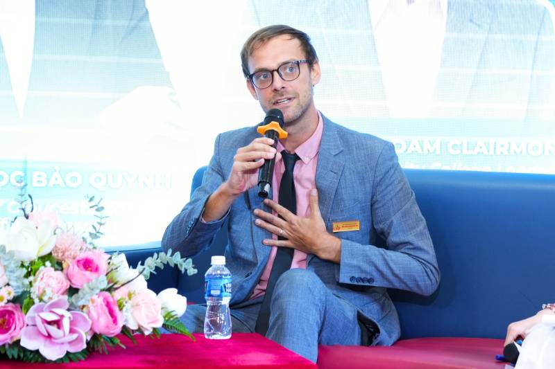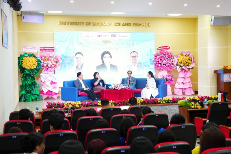 Tiếp theo chương trình là buổi Talkshow với chủ đề English Path: From Education To Profession cho thấy tiếng Anh được nhìn nhận không chỉ như một môn học mà còn là chìa khóa hội nhập toàn cầu. Tại đây, sinh viên sẽ được lắng nghe những câu chuyện thực tế và truyền cảm hứng về hành trình học tập và làm việc cùng tiếng Anh, vai trò của tiếng Anh như chiếc cầu nối tri thức và cơ hội, lợi thế cạnh tranh trong sự nghiệp, cũng như giá trị của chứng chỉ quốc tế TESOL trong việc mở rộng con đường nghề nghiệp. Talkshow có sự tham gia và chia sẻ từ các diễn giả: Mr. Ben Adam Clairmonte – Giảng viên Viện Quốc tế UEF; Ms. Lương Ngọc Bảo Quỳnh – Cựu sinh viên Gloucestershire Vietnam, Academic Officer, Resolist; Mr. Khưu Hoàng Nhật Minh – Head of Communication, HCMC TESOL Association. Đây là một không gian ý nghĩa để sinh viên nhìn rõ hơn con đường phát triển cùng tiếng Anh, từ học tập đến nghề nghiệp tương lai.