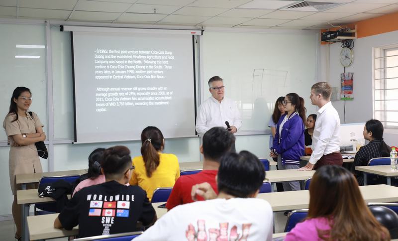 Sau buổi làm việc, GS. Albert Lehner cũng đã có buổi gặp gỡ và giao lưu trực tiếp với sinh viên ngành Ngôn ngữ Nhật tại UEF. Được biết, trước đó giáo sư cũng có buổi chia sẻ kiến thức tiếng Anh chuyên ngành cho sinh viên nhóm ngành Du lịch – Khách sạn qua buổi báo cáo chuyên đề “English for Tourism and Hospitality”.