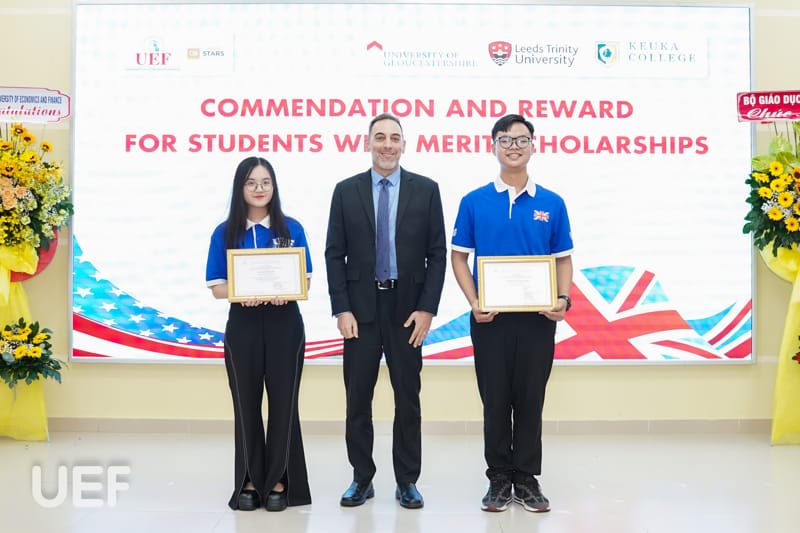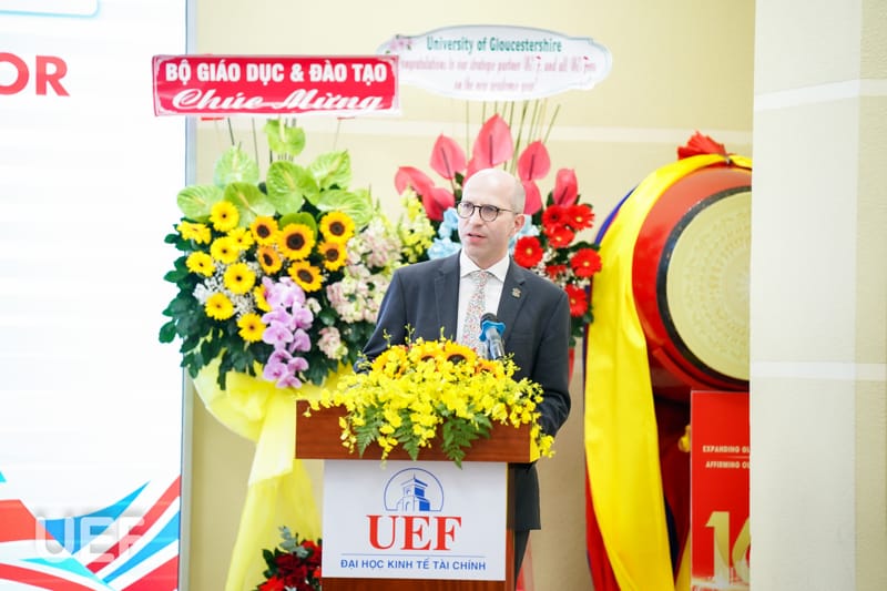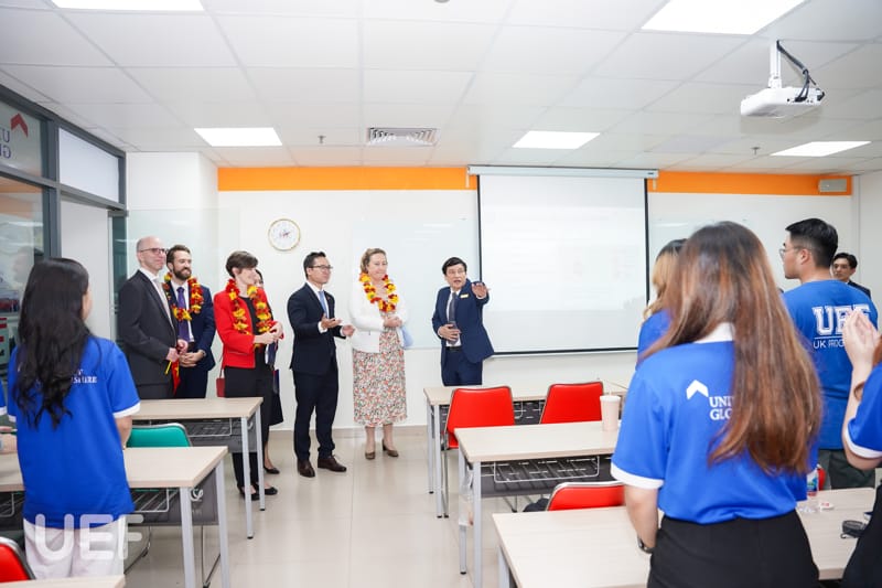 Trong khuôn khổ chương trình tiếp đón đoàn lãnh đạo Vương quốc Anh, TS. Đỗ Hữu Nguyên Lộc - Phó Hiệu trưởng, Viện trưởng Viện Quốc tế đã có phần chia sẻ, trao đổi về chiến lược quốc tế hóa giáo dục ở thời điểm hiện tại và tương lai. Mục tiêu UEF hướng đến là mở rộng quan hệ hợp tác chiến lược cùng các đại học Anh, cụ thể là UoG qua nhiều hình thức như triển khai học kỳ quốc tế, chương trình song bằng, chương trình chuyển tiếp, trao đổi giảng viên và hợp tác nghiên cứu.