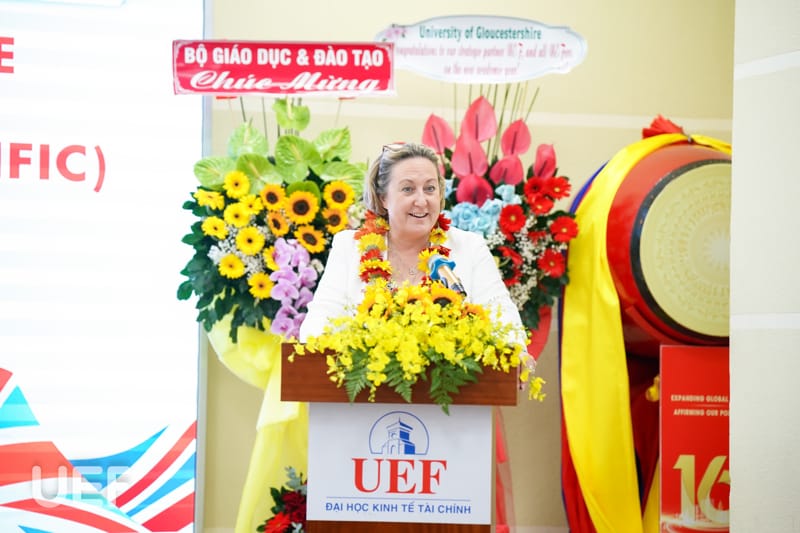 Phát biểu tại lể ký kết MOA giữa UoG và UEF, bà Anne-Marie Trevelyan chia sẻ: “Tôi rất vui mừng khi đến tham dự buổi lễ ký kết giữa Đại học Gloucestershire và Trường Đại học Kinh tế - Tài chính TP.HCM (UEF) vào buổi chiều hôm nay. Năm 2023 là năm đặc biệt quan trọng đối với mối quan hệ Anh - Việt - cột mốc đánh dấu 50 năm quan hệ ngoại giao giữa chúng ta. Tôi vô cùng vui mừng khi buổi lễ ký kết này sẽ đóng góp vào sự phát triển và mở rộng cơ hội giáo dục quốc tế tại Việt Nam, mang đến cho những người trẻ cơ hội tiếp cận các kỹ năng cần thiết để thành công”.