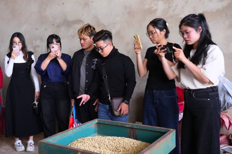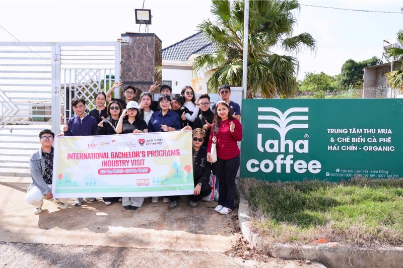 Tiếp đó, tại Laha Coffee Farm, sinh viên được tìm hiểu toàn bộ quy trình sản xuất cà phê – từ khâu trồng trọt, chăm sóc, thu hoạch đến chế biến và phát triển sản phẩm thương mại. Các bạn cũng được tham quan khu vực rang xay, được hướng dẫn phân biệt hương vị của từng dòng cà phê khác nhau. Thông qua hoạt động này, sinh viên có góc nhìn thực tế về quản trị sản xuất, xây dựng thương hiệu nông nghiệp và chiến lược marketing trong lĩnh vực nông sản đặc thù. Trải nghiệm này chính là mảnh ghép cuối cùng, góp phần hoàn thiện hành trình học tập thực tế tại Đà Lạt.