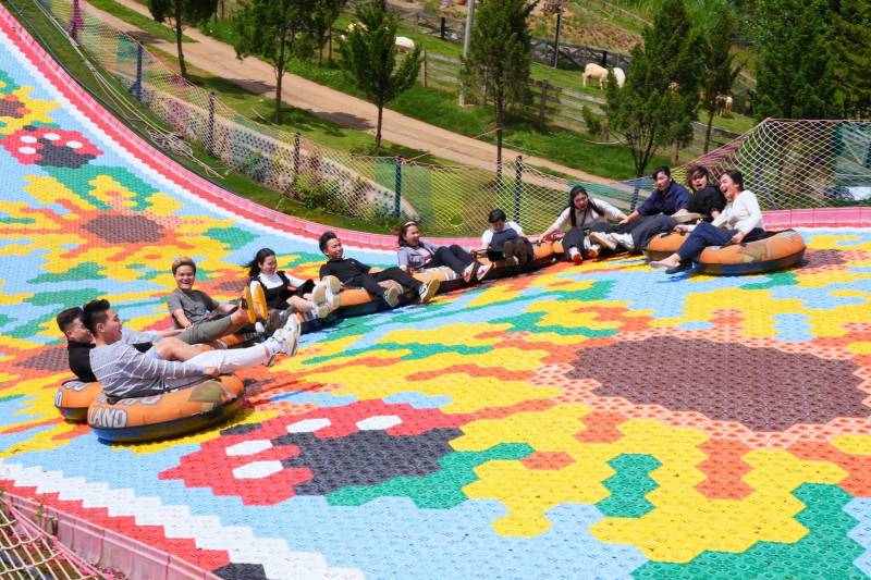 Trước khi chia tay Đà Lạt, đoàn sinh viên tiếp tục hành trình học tập và khám phá tại hai điểm đến tiêu biểu, kết hợp giữa yếu tố sinh thái, trải nghiệm văn hóa và nông nghiệp bền vững. Điểm đến đầu tiên là Mongo Land – khu du lịch sinh thái mang phong cách hiện đại, sáng tạo và thân thiện với môi trường. Không gian nơi đây được ví như một thảo nguyên Mông Cổ thu nhỏ giữa lòng Đà Lạt, với kiến trúc độc đáo, kết hợp hài hòa giữa cảnh quan thiên nhiên và trải nghiệm văn hóa du mục. Sinh viên có cơ hội quan sát cách tổ chức hoạt động du lịch theo xu hướng mới, phù hợp với nhu cầu trải nghiệm của thế hệ trẻ.