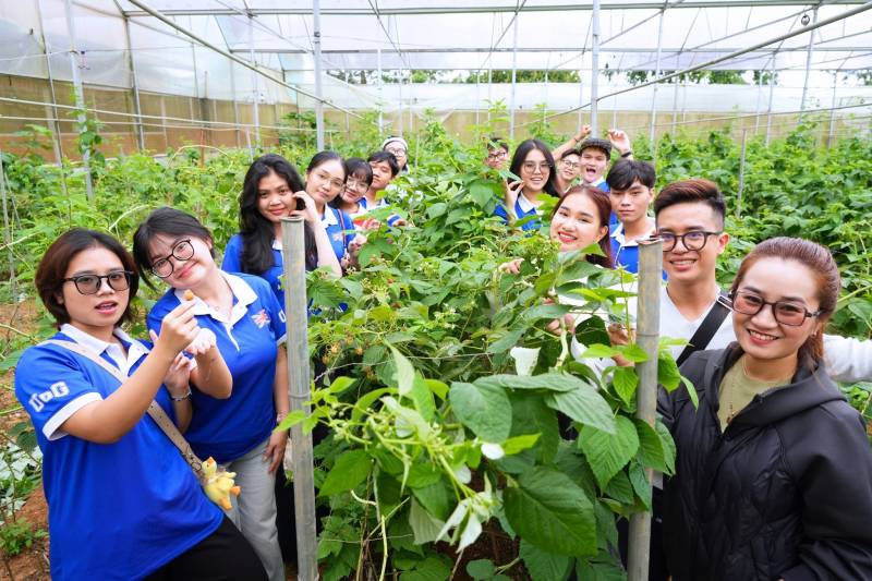 Khởi hành từ TP.HCM, đoàn sinh viên bắt đầu hành trình tại công ty Dalatmilk. Tại đây, các bạn được ttìm hiểu quy trình sản xuất sữa thanh trùng và tiệt trùng theo tiêu chuẩn quốc tế, cùng mô hình trang trại khép kín hiện đại từ chăn nuôi đến đóng gói sản phẩm. Buổi chiều, đoàn đến tham quan Công ty LanbianVF – nơi vận hành trang trại trồng cây phúc bồn tử với quy trình sản xuất đa dạng các sản phẩm như trà, nước lên men, socola… từ loại quả đặc trưng này. Đây là mô hình kết hợp nông nghiệp với đổi mới sáng tạo mang màu sắc địa phương. Kết thúc ngày đầu tiên, các bạn nhận phòng tại River Park Hotel, nghỉ ngơi và chuẩn bị cho ngày học tập kế tiếp.