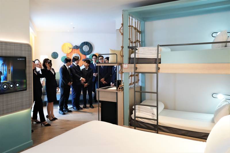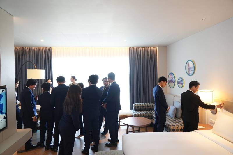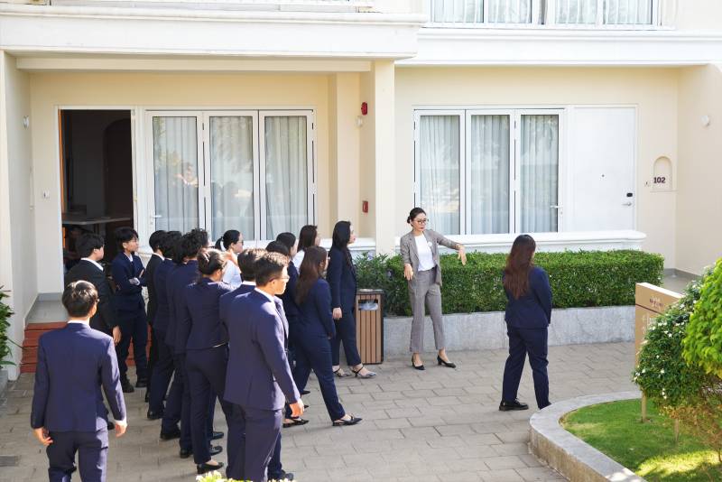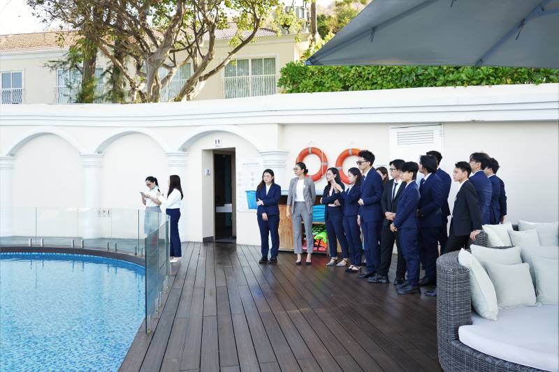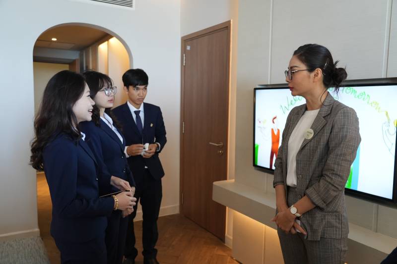 Bên cạnh đó, sinh viên UoG Vietnam còn được tham quan các hạng phòng khác nhau của khách sạn, khu vực hồ bơi, khu vực nhà hàng, khu bếp cũng như quy trình vận hành, làm việc của từng bộ phận. Buổi tham quan đã mang đến những trải nghiệm mới mẻ trong môi trường làm việc đẳng cấp quốc tế.