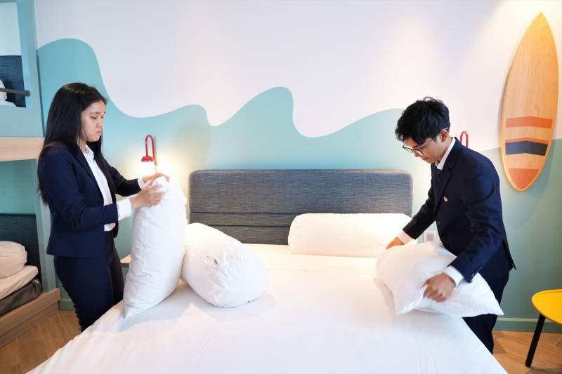 Sinh viên UoG Vietnam được hướng dẫn set-up giường khách sạn