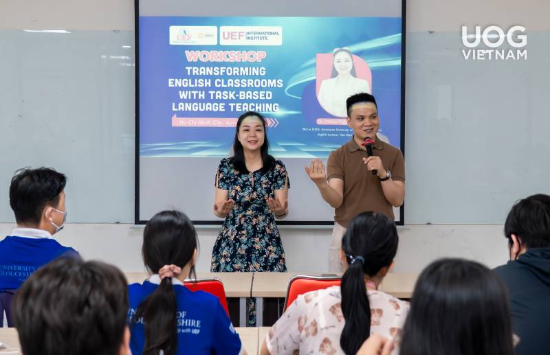 Vừa qua, Gloucestershire Vietnam đã tổ chức workshop “Transforming English Classrooms with Task-Based Language Teaching” dành cho sinh viên học phần TESOL1 và các bạn quan tâm đến lĩnh vực giảng dạy tiếng Anh. Chương trình diễn ra tại phòng A.09-06, UEF với sự tham gia của Tiến sĩ Châu Thục Quyên – chuyên gia về Task-Based Language Teaching (TBLT).