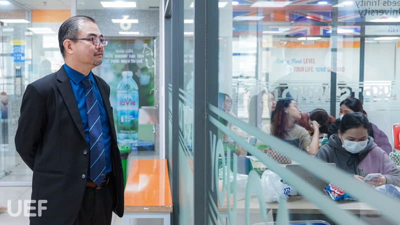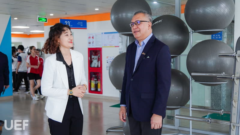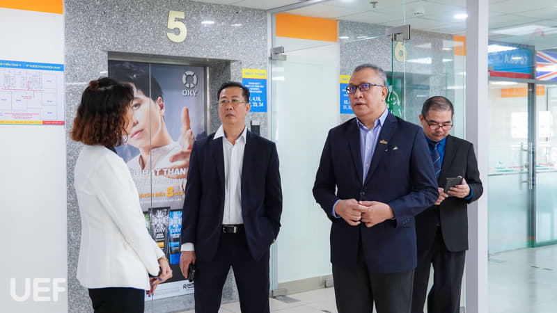 Đoàn lãnh đạo UNIMAS tham quan không gian làm việc và học tập tại UEF