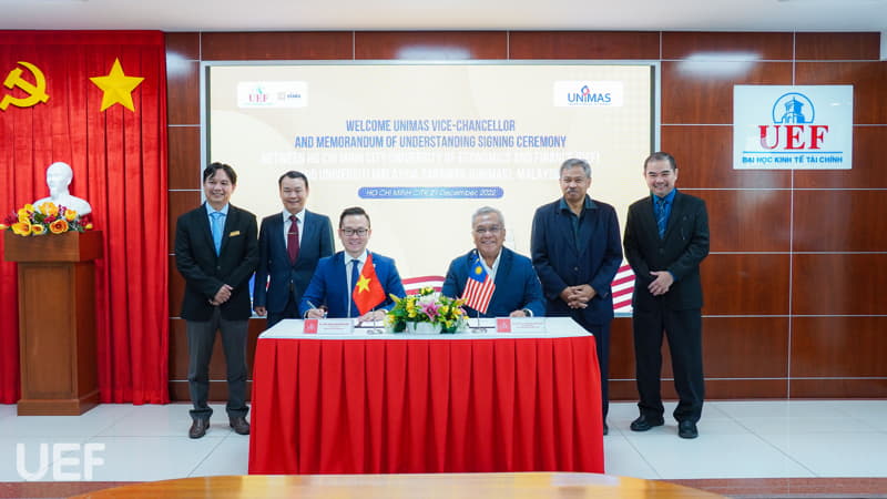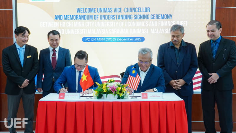 Dựa trên các tiêu chí hợp tác về chương trình đạo quốc tế nói chung và nội dung làm việc về lĩnh vực quản trị kinh doanh, tài chính – thương mại, đại diện UEF và UNIMAS đã tiến hành ký kết MOU. Trong đó, nội dung ký kết hướng đến chương trình hợp tác trọng tâm là đồng giảng, trao đổi sinh viên.