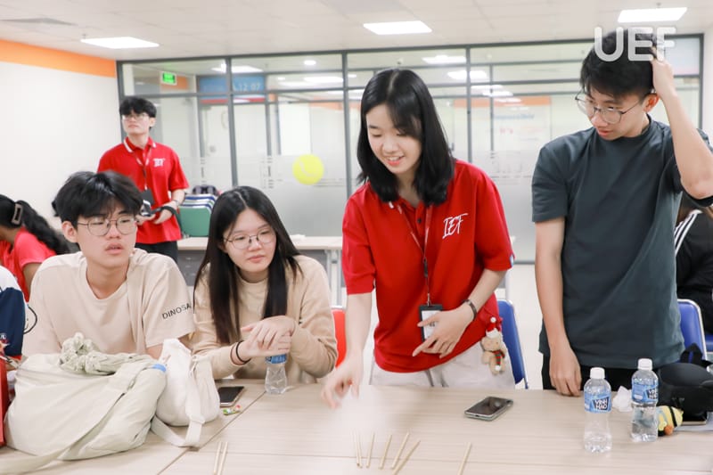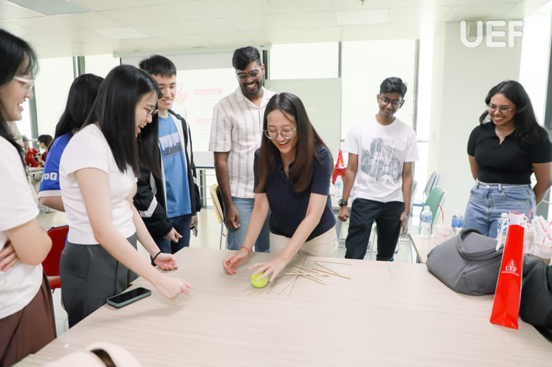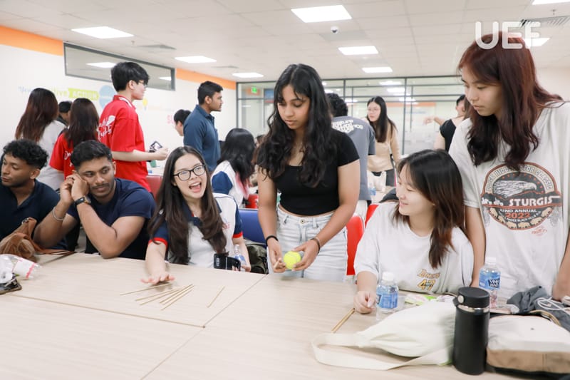 Các bạn sinh viên quốc tế cũng giới thiệu một số thông tin nổi bật về Singapore để UEFers mở rộng góc nhìn toàn cầu. Các bạn còn được trải nghiệm trò chơi dân gian banh đũa đầy thú vị.