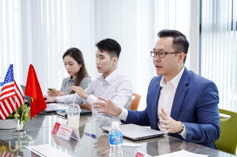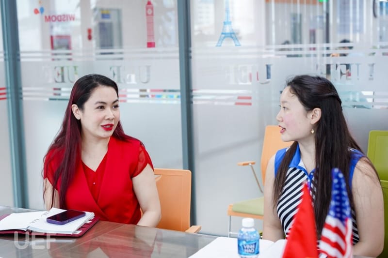 Tại buổi gặp gỡ, Allison Liu đã được khám phá bức tranh toàn diện về mô hình đào tạo song ngữ - quốc tế của UEF thông qua những chia sẻ từ các thầy cô và nhân viên Nhà trường. Trong đó, đại diện UEF, TS. Đỗ Hữu Nguyên Lộc cũng gửi lời chào mừng và động viên chân thành nhất đến bạn thực tập sinh. Thầy cho biết, hiện nay UEF đang tích cực hợp tác với nhiều trường đại học uy tín trên thế giới nhằm tạo ra cơ hội học tập, trải nghiệm văn hóa “xuyên biên giới” dành cho sinh viên của hai bên. Với sự năng động, nhiệt tình của giảng viên và sinh viên tại đây, tin chắc rằng Allison Liu có thể tích lũy cho mình rất nhiều kinh nghiệm và trải nghiệm đáng nhớ trong quá trình công tác.