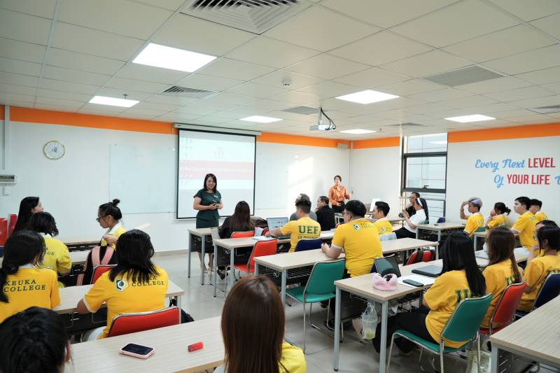 Sau buổi làm việc, Đoàn đại biểu đã có buổi gặp gỡ và giao lưu với sinh viên chương trình cử nhân quốc tế do UEF liên kết ĐH Keuka Các bạn sinh viên đã nhiệt tình chia sẻ, bày tỏ cảm nhận của bản thân về chương trình giảng dạy, sự hỗ trợ của đội ngũ giảng viên, điều kiện học tập,... đến các Qúy lãnh đạo.