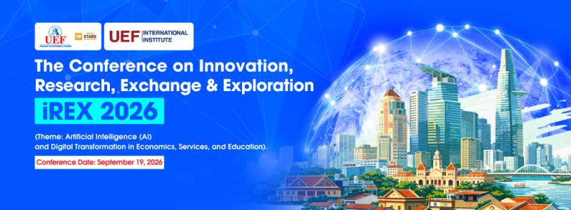 Viện Quốc tế UEF chính thức phát động thư mời viết bài tham dự hội thảo khoa học iREX – Conference on Innovation, Research, Exchange & eXploration, với chủ đề “Trí tuệ nhân tạo (AI) và chuyển đổi số trong kinh tế, dịch vụ và giáo dục”. Đây là diễn đàn học thuật được tổ chức nhằm tạo không gian giao lưu, chia sẻ kết quả nghiên cứu, kinh nghiệm học thuật, đồng thời thúc đẩy kết nối liên ngành giữa các nhà khoa học, chuyên gia, giảng viên và sinh viên đến từ nhiều cơ sở giáo dục đại học trên cả nước.