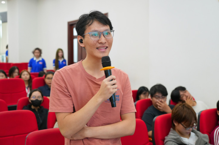 Tiếp đến phần giao lưu hỏi đáp, các bạn sinh viên đã đặt nhiều câu hỏi thực tế xoay quanh việc phòng tránh cận thị học đường, nguyên nhân giảm thị lực do sử dụng thiết bị điện tử, cũng như các phương pháp chăm sóc mắt đúng cách. Bác sĩ đã tận tình giải đáp từng thắc mắc, mang đến nhiều lời khuyên hữu ích giúp sinh viên nâng cao ý thức chăm sóc sức khoẻ thị giác hằng ngày.