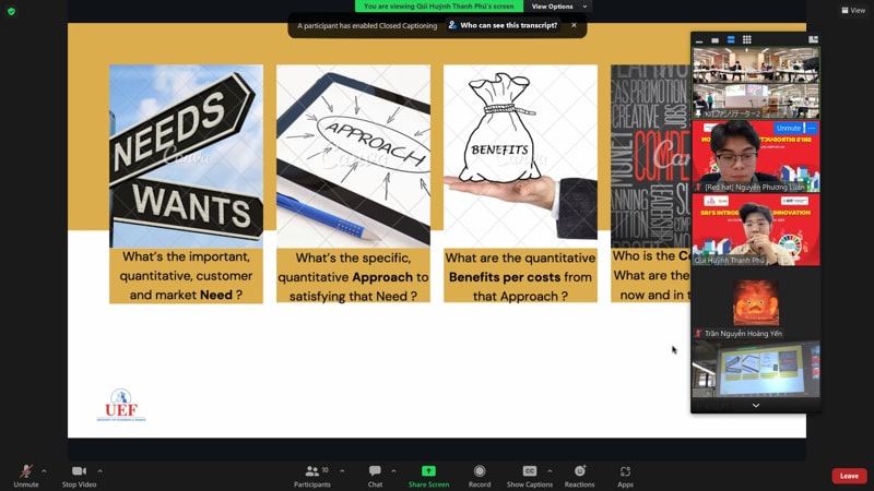 Thông qua workshop, các bạn được hướng dẫn các kiến thức, thao tác trong đổi mới sáng tạo; nâng cao khả năng giao tiếp, thuyết trình bằng tiếng Anh; hợp tác thực hiện dự án sáng tạo với các bạn sinh viên Nhật Bản; được hướng dẫn cách xử lý vấn đề một cách nhanh chóng. Đồng thời, workshop được dẫn dắt bởi đội ngũ giảng viên, chuyên gia rất thân thiện, nhiệt tình giải đáp thắc mắc, cùng đưa ra ý kiến và thảo luận tích cực. Tất cả điều này đã giúp các bạn sinh viên UEF đã có những trải nghiệm quý giá.