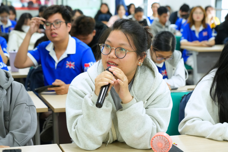 Phần Q&A nhận được sự quan tâm lớn từ sinh viên khi hai diễn giả dành thời gian phân tích sâu hơn về sự khác biệt cốt lõi giữa IELTS và VSTEP. Nhiều câu hỏi xoay quanh việc nên chọn kỳ thi nào cho phù hợp với định hướng học tập và nghề nghiệp, cách xây dựng kế hoạch ôn luyện theo từng trình độ. Hai diễn giả đưa ra những lời khuyên sát thực, giúp sinh viên hiểu rõ lộ trình tối ưu để đạt kết quả cao nhất.