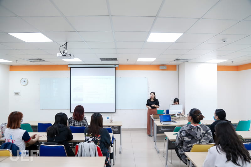 Đại diện các đơn vị chia sẻ tại chương trình có TS. Nguyễn Thị Lan – Phó Trưởng khoa Ngôn ngữ và Văn hóa quốc tế, ThS. Huỳnh Tú Anh – Phó Viện trưởng Viện Quốc tế.