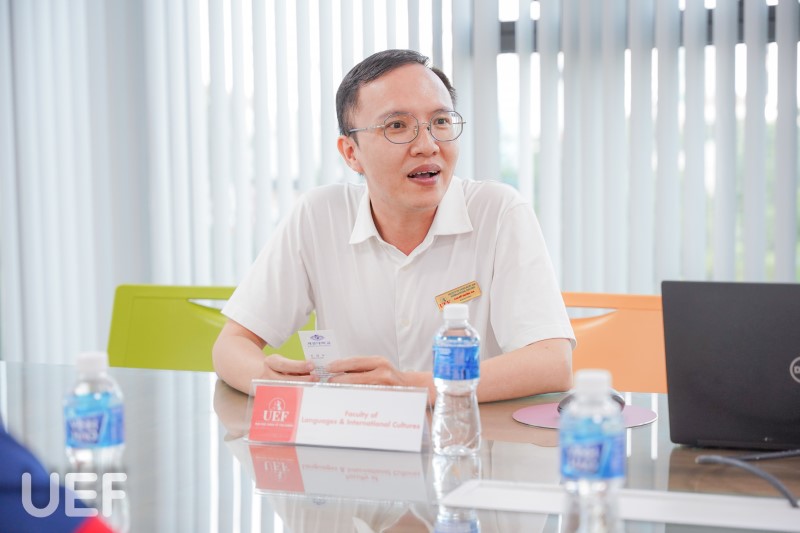 Buổi gặp gỡ có sự tham dự của ThS. Huỳnh Tú Anh - Phó Viện trưởng Viện quốc tế, ThS. Phạm Thị Thùy Linh - Phó Trưởng Khoa Ngôn ngữ và Văn hóa quốc tế, ThS. Cao Đỗ Quyền - Trợ lý ngành Ngôn ngữ Nhật và ông Sangsoo Shin - Đại diện Keimyung University (Hàn Quốc).