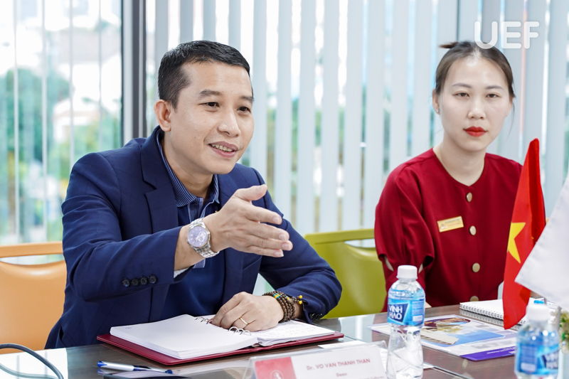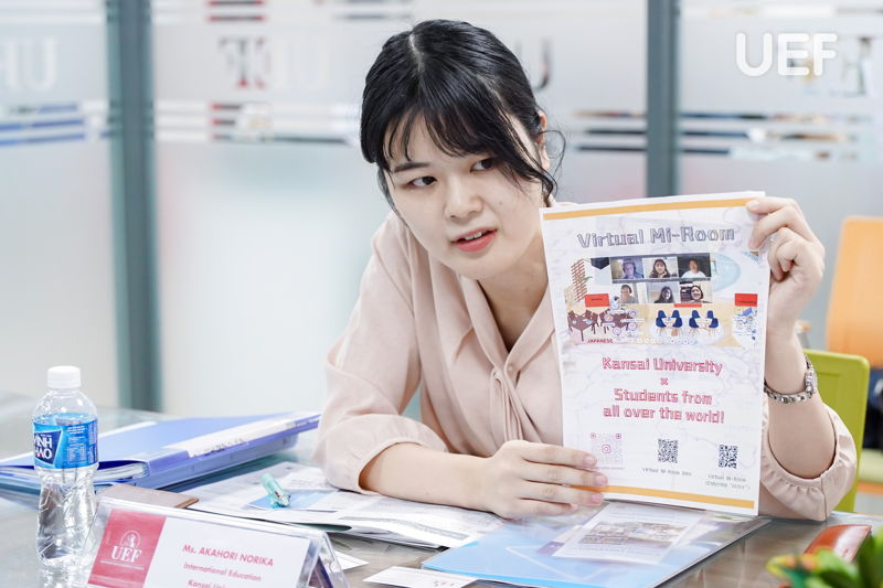 Đại diện UEF, thầy Võ Văn Thành Thân đã giới thiệu tổng quan về đơn vị. Trong đó, các chương trình giao lưu, hợp tác quốc tế liên tục được triển khai và không ngừng mở rộng. Tại Nhật Bản, UEF đã hợp tác với một số trường đại học lớn và tổ chức thành công nhiều chương trình giao lưu sinh viên, học kỳ quốc tế những năm vừa qua. Đặc biệt, số lượng sinh viên tham gia thực tập tại quốc gia này ngày một tăng, minh chứng cho mối quan hệ hợp tác chặt chẽ giữa UEF với các đơn vị, đối tác tại Nhật. Đó cũng là tiền đề quan trọng trong việc tiếp tục thiết lập một mối quan hệ hợp tác mới với Kansai University trong tương lai gần, thầy chia sẻ.