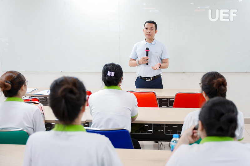 Trước khi chính thức bước vào buổi phỏng vấn, thầy Võ Văn Thành Thân - Giám đốc Trung tâm Phát triển nguồn nhân lực Việt - Nhật đã có những chia sẻ và dặn dò mang tính định hướng, giúp UEFers tự tin hơn trong phần thể hiện của mình. Những lời khuyên thực tế như cách trả lời phỏng vấn, giữ thái độ bình tĩnh, tôn trọng văn hóa doanh nghiệp Nhật được thầy truyền đạt ngắn gọn, dễ hiểu. Phía Công ty COCORO cũng hỗ trợ hướng dẫn tác phong, chào hỏi và tinh thần chuẩn bị trước nhà tuyển dụng.